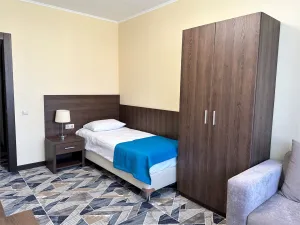 Гостей размещают в четырёх корпусах с разными категориями номеров: от Стандарта до Люкса. Кормят гостей три раза в день по системе "шведский стол", дополнительно можно поесть в кафе или в баре.
