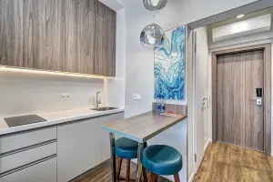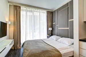 Недалеко от сердца Сочи, примерно в получасе, раскинулся уютный отель. Апарт-отель на Лучезарной – пристанище для тех, кто ищет лучший отдых на Черном море, жаждет спокойствие и комфорт. Этот просторный курортный комплекс включает несколько зданий с роскошными апартаментами, в которых есть мини-кухни, стильная мебель и вся необходимая техника. В каждом номере имеется отдельная своя ванная и доступ к Wi-Fi.